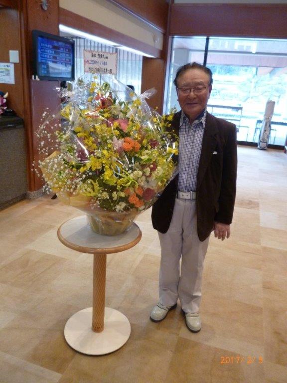 写真は比良ゴルフの皆さんからのお祝いの花束だそうです。