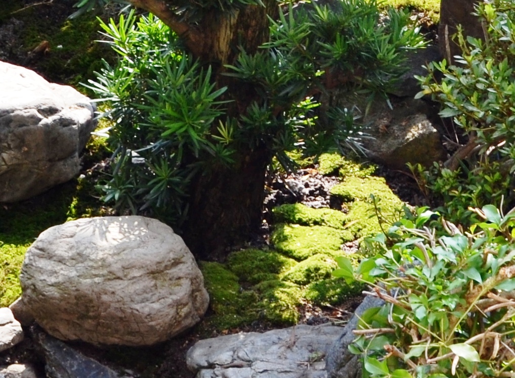 2017年8月9日前回苔の話をしましたが、良く観察すると、スナ苔の他ハイ苔(シノブ苔を含む)、小杉苔、山苔(ホソバオキナ苔、カモジ苔)なども自生しています。その他の苔もあるかもしれません。下記は槙の木の根元の山苔の写真です。右側が山苔左はシノブ苔です。これらは結構雑草に覆われていたのですが、苔に興味を持ち清掃したところです。綺麗にすると濡れると緑が綺麗です、乾燥すると少し白く見えます。別の場所に7月にシッポ苔を購入して植えましたが定着するかどうかは不明です。杉苔一辺倒でしたが、いろんな苔も結構美しいです、7月に色んな場所に苔の種をまきましたので秋が楽しみです。ちなみに苔の種とは要するに刈り取った苔の葉のことです。