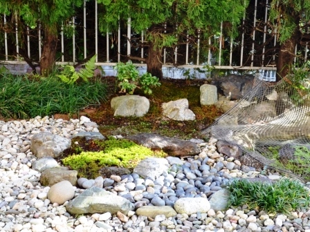 私が庭に苔を植えたのは、約35年前に当地に居住した当時、近くに会社の同僚が住む旧家がああり、訪問すると見事な苔庭が有り、いくらでも増えるので持って帰れとのことで、杉苔を頂き庭に植えたのが始まりです。しかし、杉苔は一部定着しましたが、大部分は枯れてしまい、増える状況には至りませんでした。元々築山に植えたのですが、土が山砂、おまけに傾斜地であり、後日知ったのですが、条件が極めて悪かったようです。それでも、頑張って何度か杉苔を購入し下記の写真の杉苔の庭を完成いたしました。