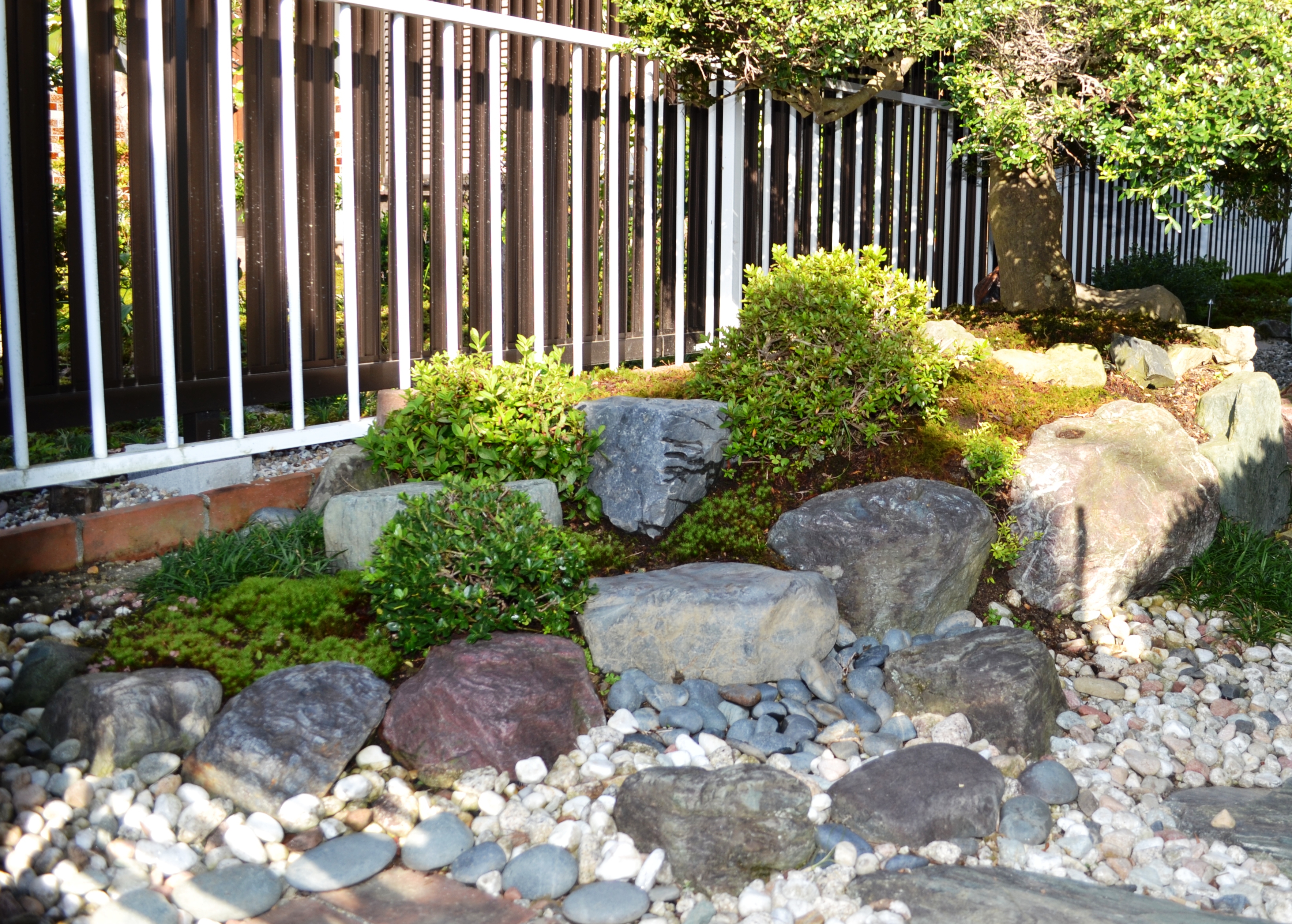下記はリビングからの風景槙の根元はホソバ翁苔です。