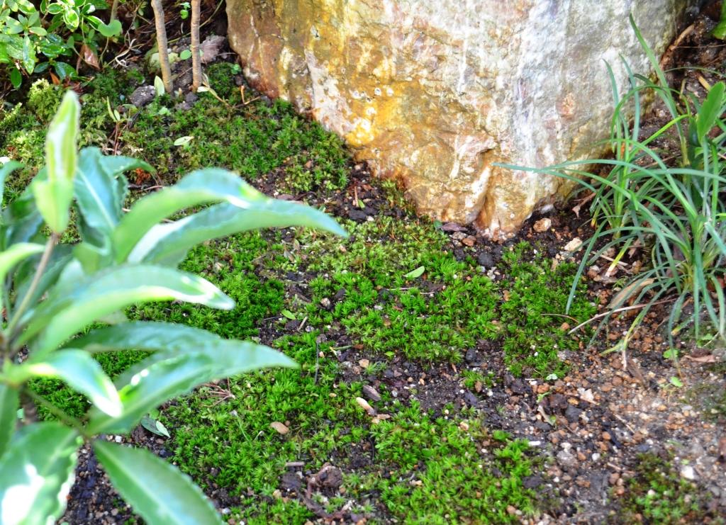 上記に示すスギ苔は1日の半分以上、特に午前中だけ日が当たるような半日照でよく育ちますが、乾燥には弱いので、風があまり通る所には適しません。