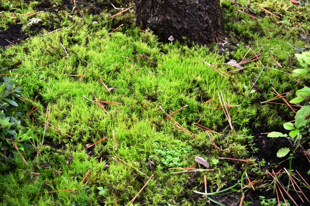 下記のシッポ苔は日陰を好む山林の腐葉土の上、半日蔭な環境によく湿気を好み、直射日光を嫌います。乾燥にも比較的強いものが多いです。比較的育て易い苔のように思います。松の木の根元に植えていますが年中緑が綺麗です。